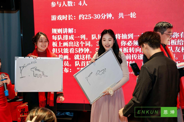 温情与祝福交织,初心与梦想同行。一段段满载心意的拜年视频率先亮相,各部门伙伴与公司领导纷纷出镜,用最真挚的话语、最温暖的笑容,送上对公司、对彼此的新春祝福,字字句句饱含深情,传递着恩坤大家庭的温暖与凝聚力。下午四点,年会在热烈的掌声中正式拉开帷幕,主持人身着盛装,为全体家人送上吉祥如意、万事顺遂的新春贺词。随后,年度“十大事件”温情分享环节正式开启,回望刚刚走过的2025年,这是极不平凡、充满挑战的一年,公司在发展战略上积极谋新求变、精准调整,每一位恩坤人都在各自岗位上直面考验、迎难而上,纵使前路有诸多不易,全体家人始终心往一处想、劲往一处使,以同心同德的坚守、众志成城的力量,携手跨越层层难关,书写了属于恩坤的奋斗篇章,这份并肩前行的情谊,成为岁月里最珍贵的印记。