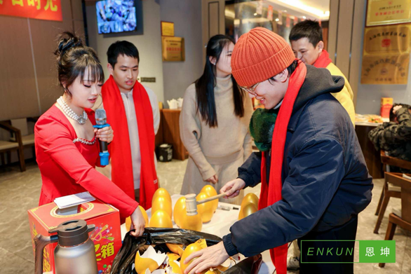 年会现场张灯结彩,暖意融融,全体恩坤人身着盛装,有序步入会场,脸上洋溢着喜悦与期待。摄影师定格下每一个灿烂的瞬间,记录下这份专属恩坤的团圆与美好。会场一侧,琳琅满目的抽奖奖品整齐陈列,金光闪闪的金蛋错落摆放,成为全场瞩目的焦点,每一位恩坤人都满怀憧憬与期许,静待这份新年好运的降临,欢声笑语间,满是对新春的美好向往与对未来的无限热忱。